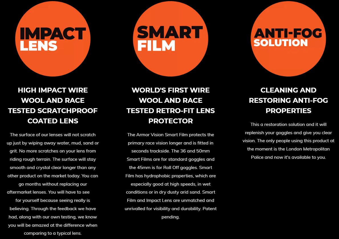 Using the same HISC technology as our Impact lenses, we have created a universally fitting clear lens protective strip which will allow you to wipe away water, mud and grit to no end without scratching your lens.